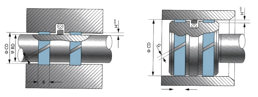 | Materia | Diameter exterior tolerantia CD | Interior diametri tolerantia d | Murus crassitudo tolerantiae H | Latitudo tolerantia B * | Incisio OD CD | G* incisio | tolerances incisio |