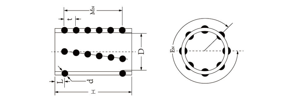 | Designatio | D | H | d | EN | MN | BALLS | t | L |